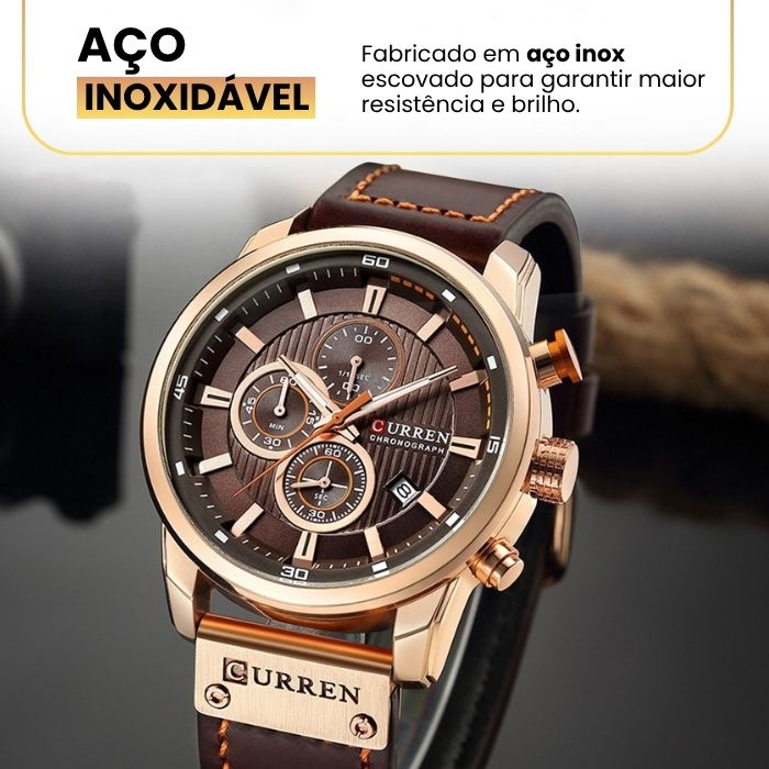 Relógio Curren Magnatta™ + Carteira Antifurto com Proteção RFID [Brinde]
