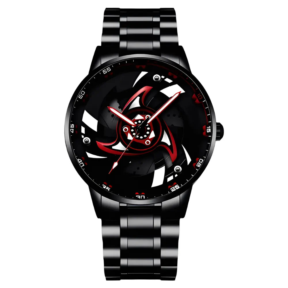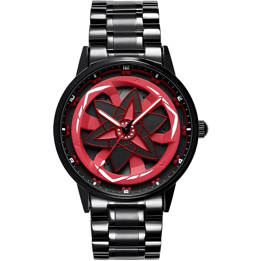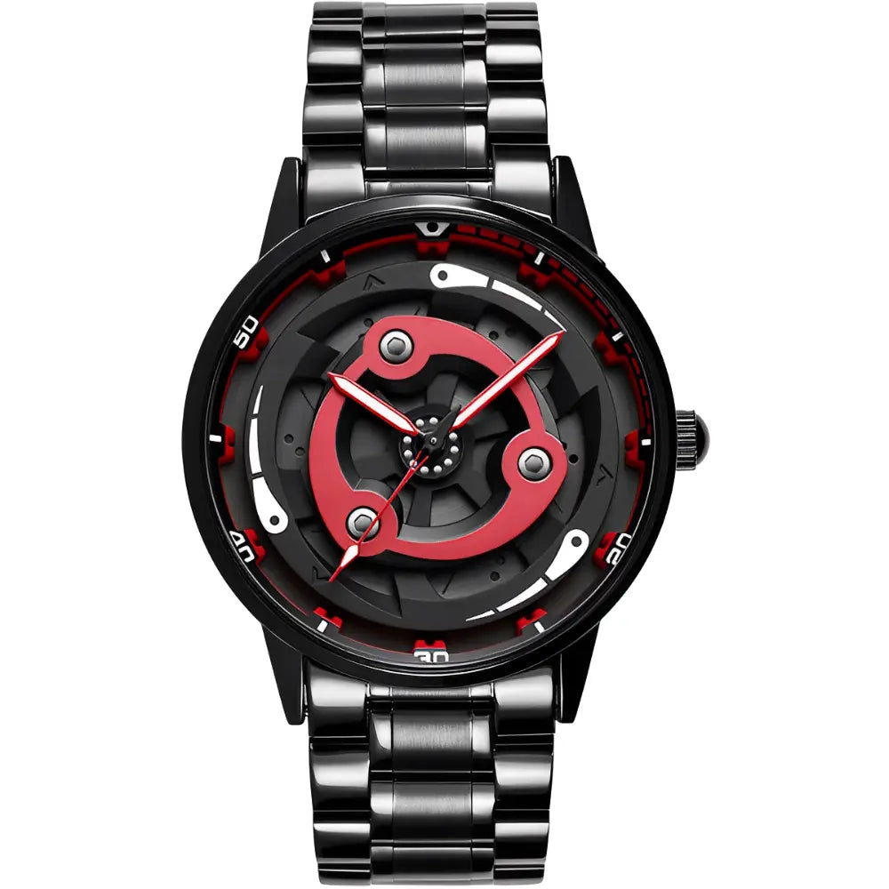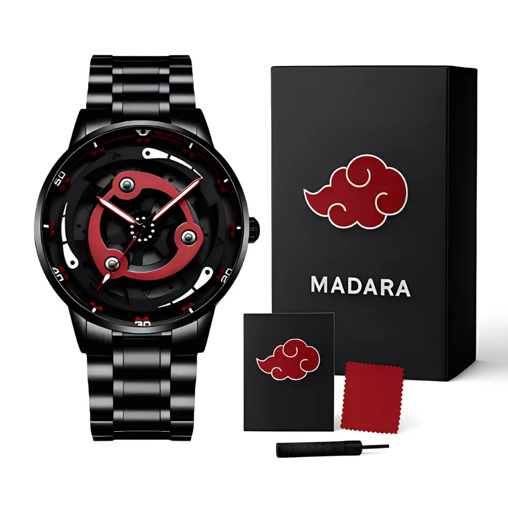 Chame a atenção com a presença de Madara Uchiha. Este relógio arrojado apresenta um mostrador giratório Mangekyō Sharingan em seu núcleo, simbolizando seu poder inigualável e visão incomparável. Forjado em aço inoxidável, cada detalhe ecoa domínio, legado e a vontade de remodelar o destino.